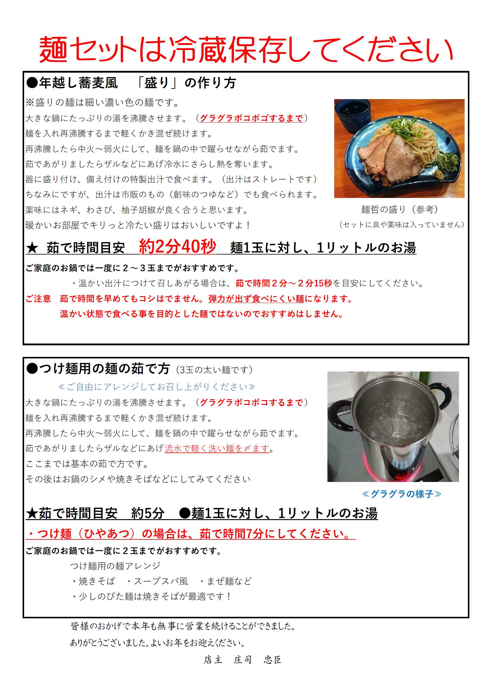 年末麺セット 茹で方説明 2025